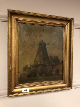 Continental school : Study of a windmill, oil on canvas, 27 x 33 cm
