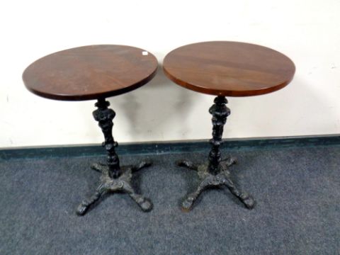 A pair of cast iron based circular pub tables, diameter 50 cm each