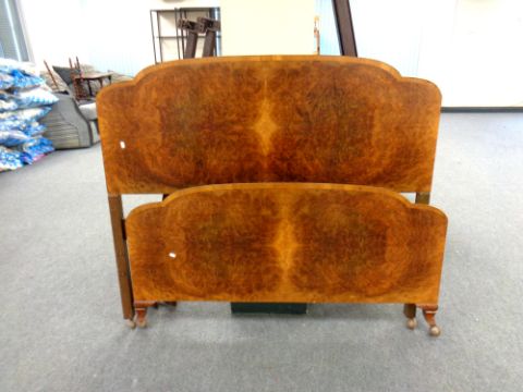 A 1920s walnut 4ft 6' bedstead with metal rails
