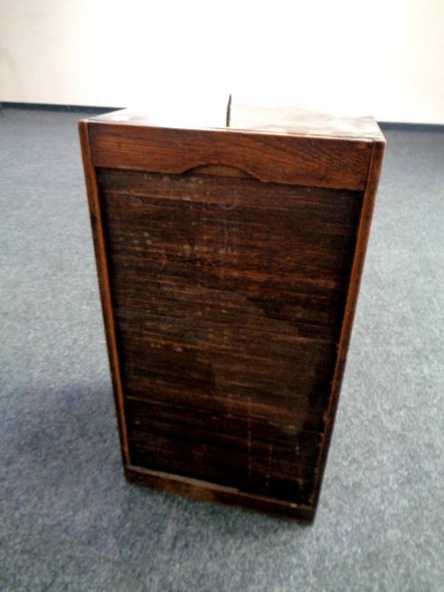 An early 20th century sliding door shutter cabinet with key