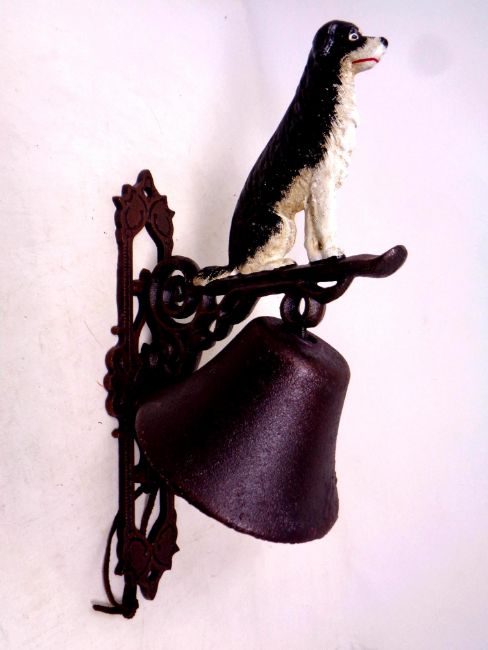 A cast iron Border Collie wall bracket with bell