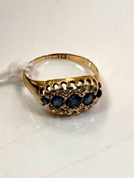 An 18ct yellow gold sapphire and diamond ring, size J, 2.6g.