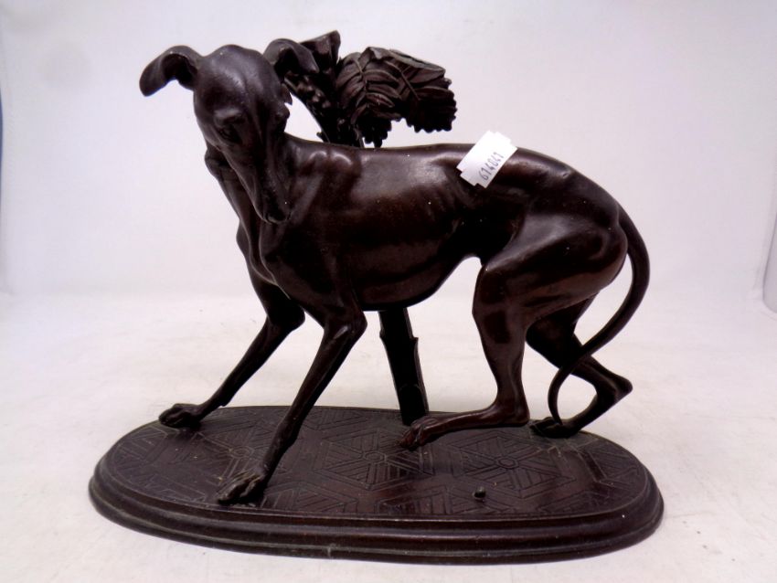 A 19th century spelter figure of a greyhound on base