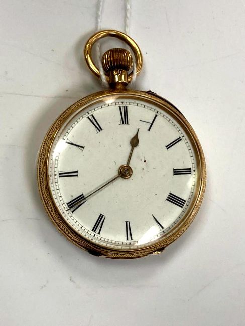 An 18ct gold fob watch, dial width 33.97 mm, 47.1g gross.