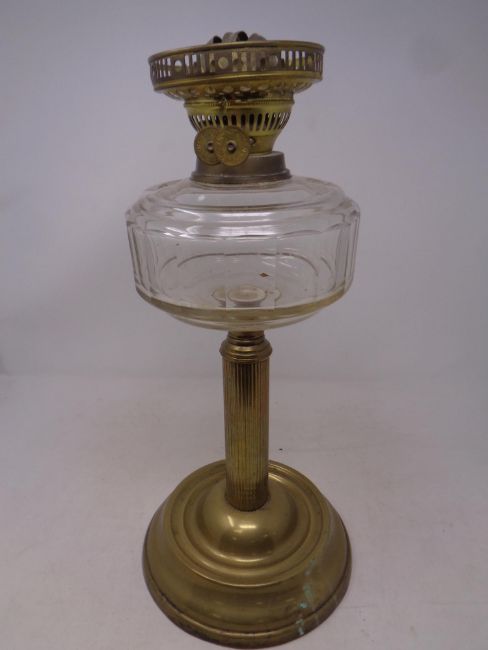 An antique Duplex brass oil lamp with glass reservoir