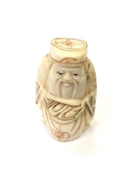 A Japanese carved bone netsuke - Village elder with a sack at his feet.