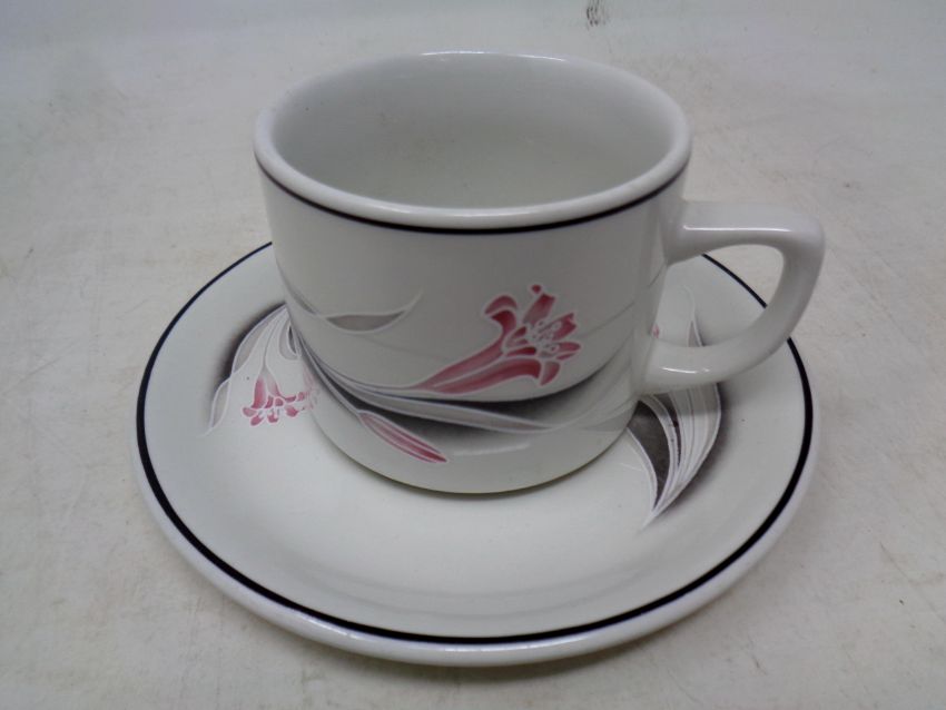Two crates containing a large quantity of Churchill Samsonite coffee cups and saucers