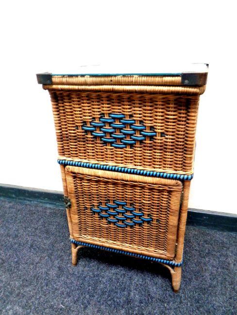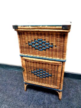 A 20th century wicker glass topped bedside cabinet, height 67 cm