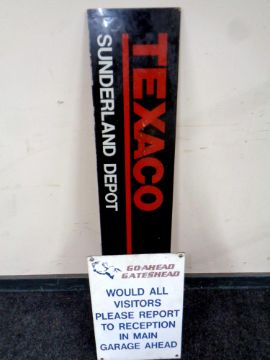 A perspex Texaco Sunderland Depot wall plaque together with a steel Go Ahead Gateshead plaque