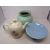 Two glass and stainless steel dishes on stands together with a ceramic teapot, vase and comport