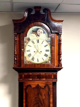A nineteenth century longcase clock by Slator Burton, with painted moonphase dial, dial width 36 cm, with pendulum and two weights, in a mahogany case.