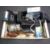 A crate containing camera bags and digital cameras by Fujifilm, Canon and Finepix, vintage cameras, National Panasonic tape deck
