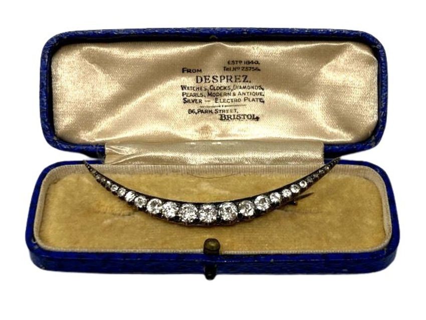 Old round cut stones the largest central stone approximately 4.5 mm. Total diamond weight approximately 1.5ct. Some inclusions under magnification to the larger stones, the smaller rose cuts to the edges are too small to grade. Colour is quite uniform and white. The stones are set in white metal. The stones which are large enough to view under low magnification look in good condition without anything clear that could be defined as chipped or damaged.
