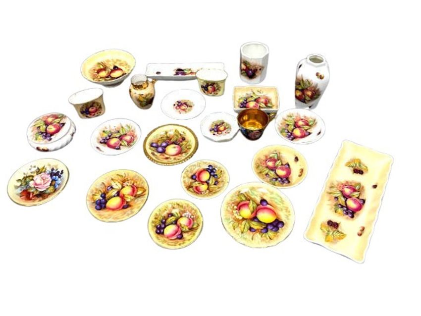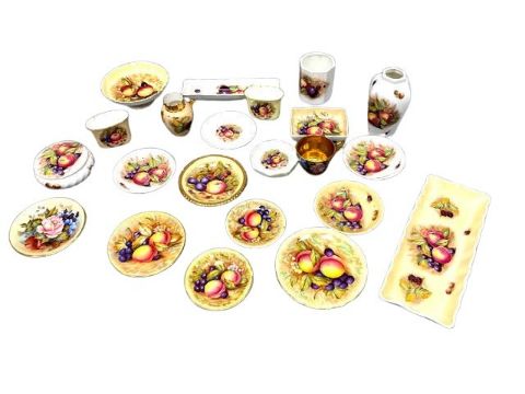 A collection of Aynsley bone china, decorated with panels of fruit and flowers. (Q)