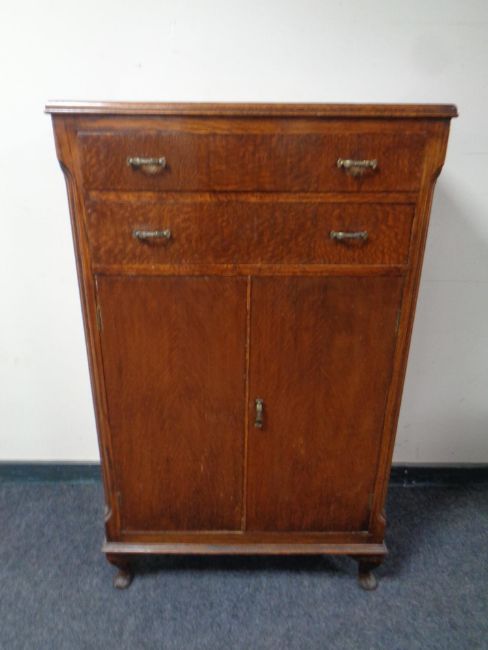 A 1920's oak linen cabinet