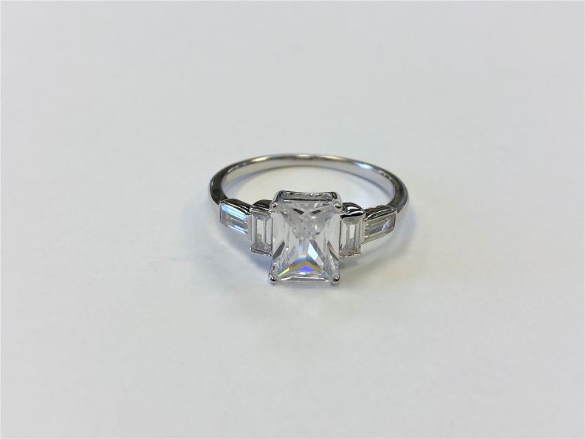 A silver Art Deco style ring set with a clear stone, size N