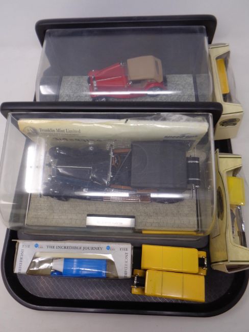 A tray of two Franklin Mint cased die cast vehicles, 1948 MG and a Rolls Royce Phantom, together with five further boxed and unboxed Days Gone and Ringtons die cast vehicles