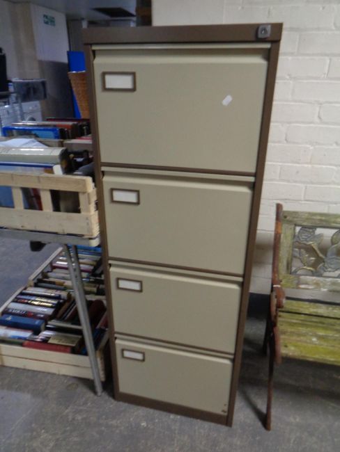 A four drawer metal filing cabinet