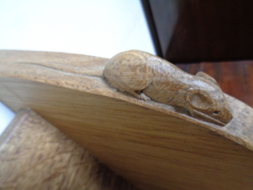 A Robert 'Mouseman' Thompson of Kilburn oak book trough, with carved mouse signature, length 45 cm.