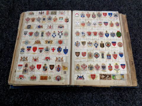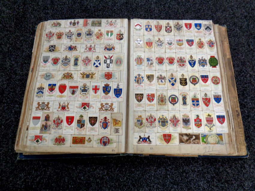 An early 20th century scrapbook containing cigarette cards and cuttings
