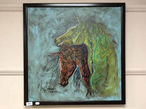 Contemporary school : Study of two horses, oil on canvas, 59cm by 59cm.