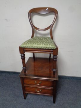 A Victorian mahogany balloon back chair and an inlaid mahogany lamp table