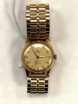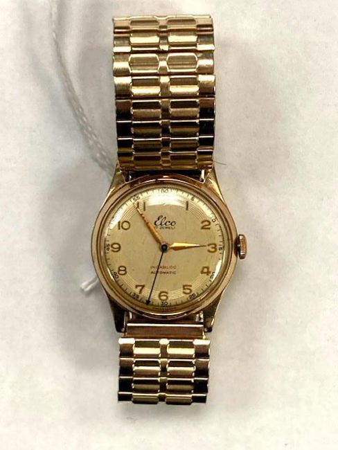 A gent's 9ct gold Elco wristwatch on plated expanding strap.