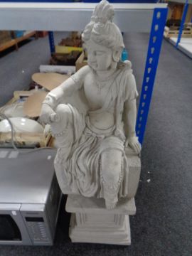 A concrete garden figure - Indian Goddess, on plinth