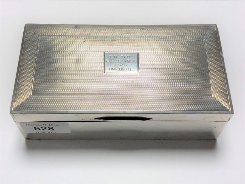A silver cigarette box, Birmingham marks