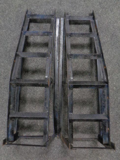 A pair of metal car ramps