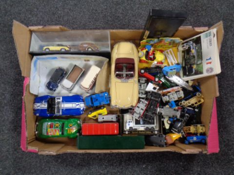 A box of assorted die cast cars - Corgi, Lledo, Matchbox, Noddy, sports cars, commercial vehicles etc