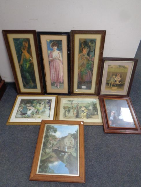 Seven early twentieth century and later colour prints including Art Deco examples etc