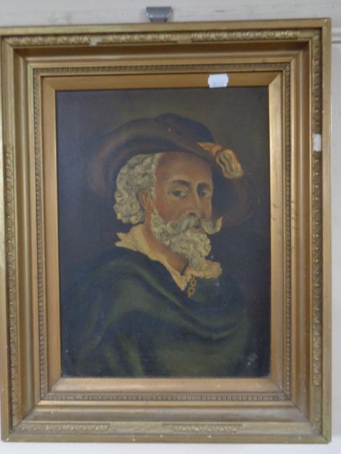 An antiquarian oil on canvas, portrait study of a gentleman, in a gilt composite frame, unsigned