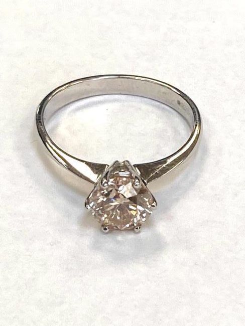 An 18ct white gold solitaire diamond ring, approximately 1.37ct, size N.