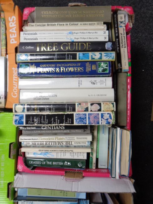 Six boxes of a large quantity of books to include dictionaries, reference, gardening, birds, etc