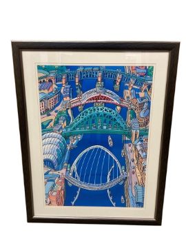 After John Coatsworth : Bridge of Newcastle upon Tyne, colour print, 58 cm x 84 cm, framed.