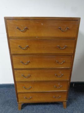 A mid 20th century walnut six drawer chest