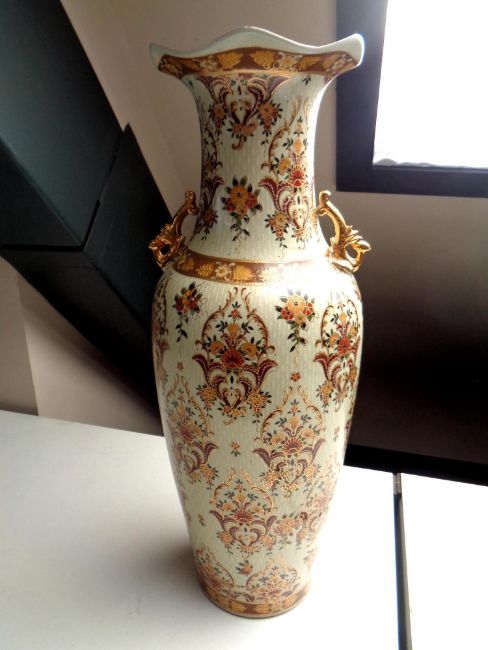 A Chinese export floral pattern vase with gilded handles, height 61 cm.