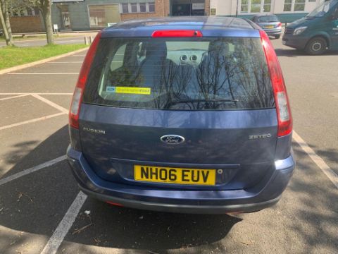 A 2006 Ford Fusion 1.4 Zetec 5 Door Auto (Climate), Blue, Petrol, Registration Number NH06 EUV, mileage 59,556, first registered 24.07.2006, one previous keeper (None on V5), MOT expired 20.08.2021, with Ford dealership service history, two keys, brand new battery fitted.
