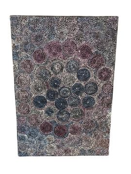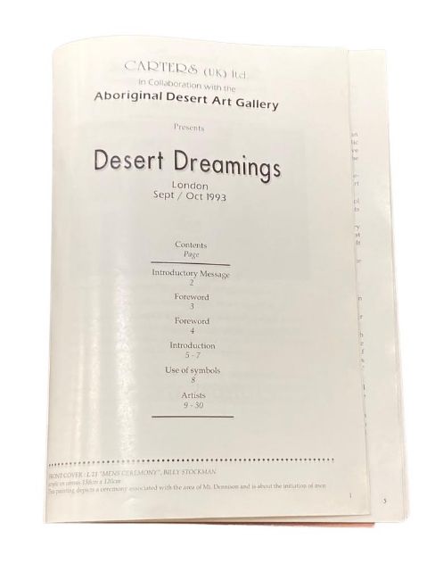 Provenance: Lot numbers 1 to 7 are believed to have been displayed at the 'Desert Dreamings' aboriginal art display, London Sept / October 1993. The catalogue produced by Carters (UK) Ltd in collaboration with the Aboriginal Desert Art Gallery. Fiona Loupos (Carters UK Ltd), mentioned in the inscription verso on Lot 3 'To Fiona and Stefan, with thanks, Shirley, Maryanne, Natalie and Michael Hollow'. There are no certifications or paperwork with the lots. The catalogue is not for sale but an image of it has been attached to each lot for reference.