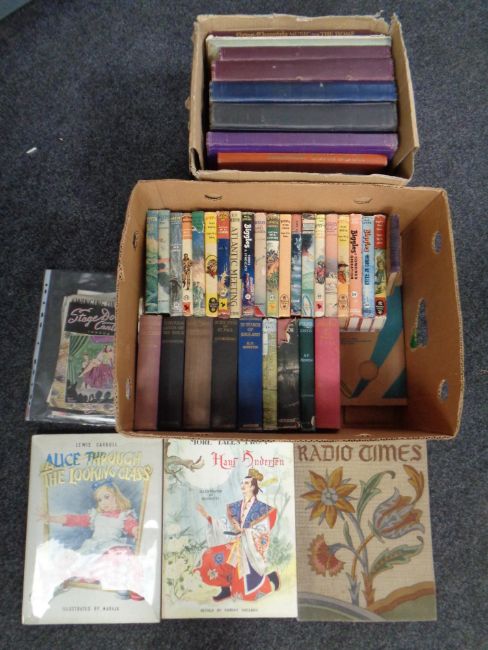 Two boxes of twentieth century volumes including children's books, Biggles books etc