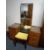 A mid century oak double door wardrobe together with a sunk centred dressing table with stool