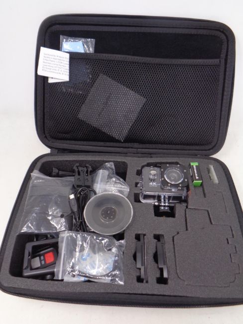 A Bitmore 4K action camera, cased with spare battery