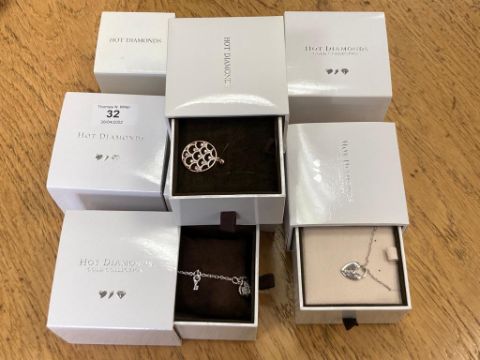 Eight 'Hot Diamonds' jewellery items including Sterling ring, charm bracelet etc, in retail boxes as new (8)