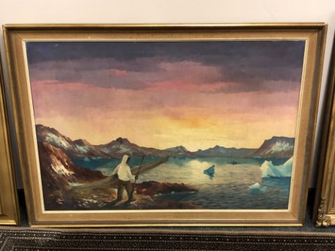 Continental school : figure with a canoe, oil on canvas 96cm x 66cm