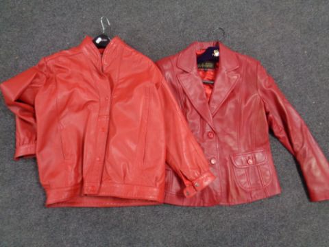 A lady's Peter Leinhardt red leather jacket together with a Sheepskin Warehouse red leather jacket
