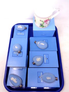 A tray of boxed Wedgwood Jasperware scent bottles