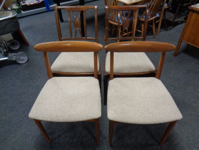 A mid 20th century rectangular extending dining table together with a pair of mid 20th century dining chairs and a further pair of mahogany dining chairs