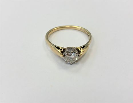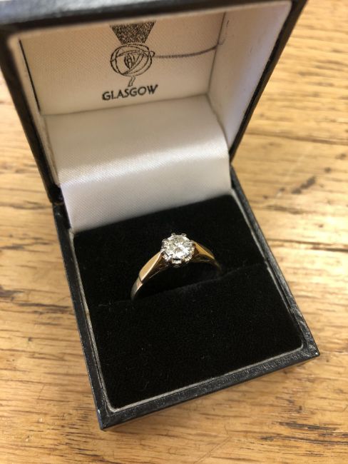 We are not diamond graders, however this stone isn't drawing lots of colour and is quite white and bright, it isn't showing bad black inclusions in the main, under low magnification it does show a feather-like inclusion towards the surface and edge of the stone. We would think it might be around Vs1 and around a G/H in colour. The diamond is approximately 5mm in diameter.