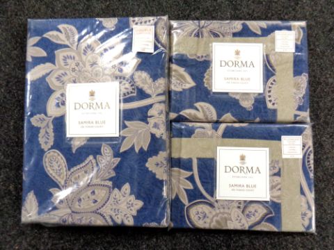 A Dorma Samira Blue 300 thread count double duvet cover together with two Oxford pillow cases (3, new and sealed)
